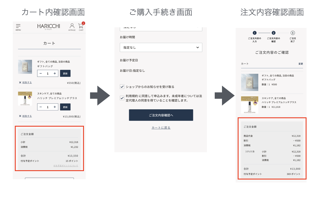 注文内容確認画面時で、割引適用されております。